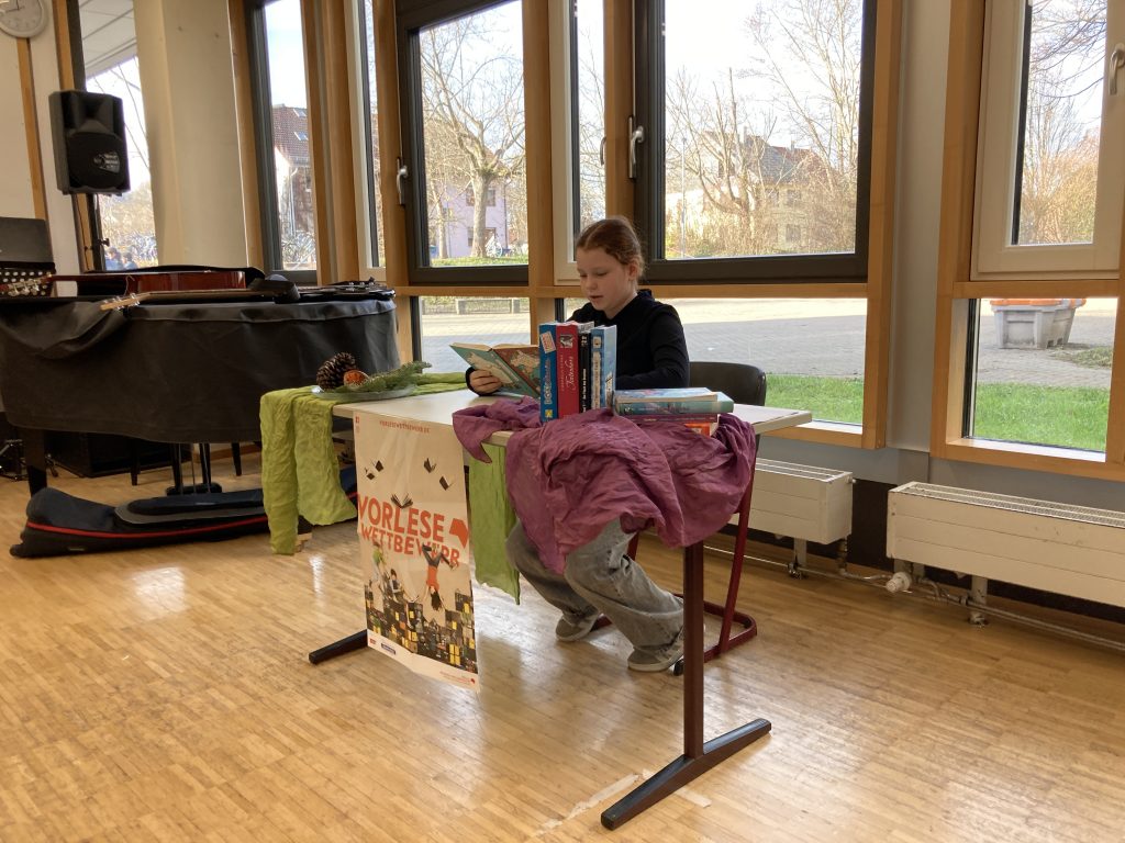 Marie aus der 6b belegte den zweiten Platz. Sie las aus „Ponyherz“ von Usch Luhn und überzeugte durch klare Betonung und ein sehr stimmiges Lesetempo.