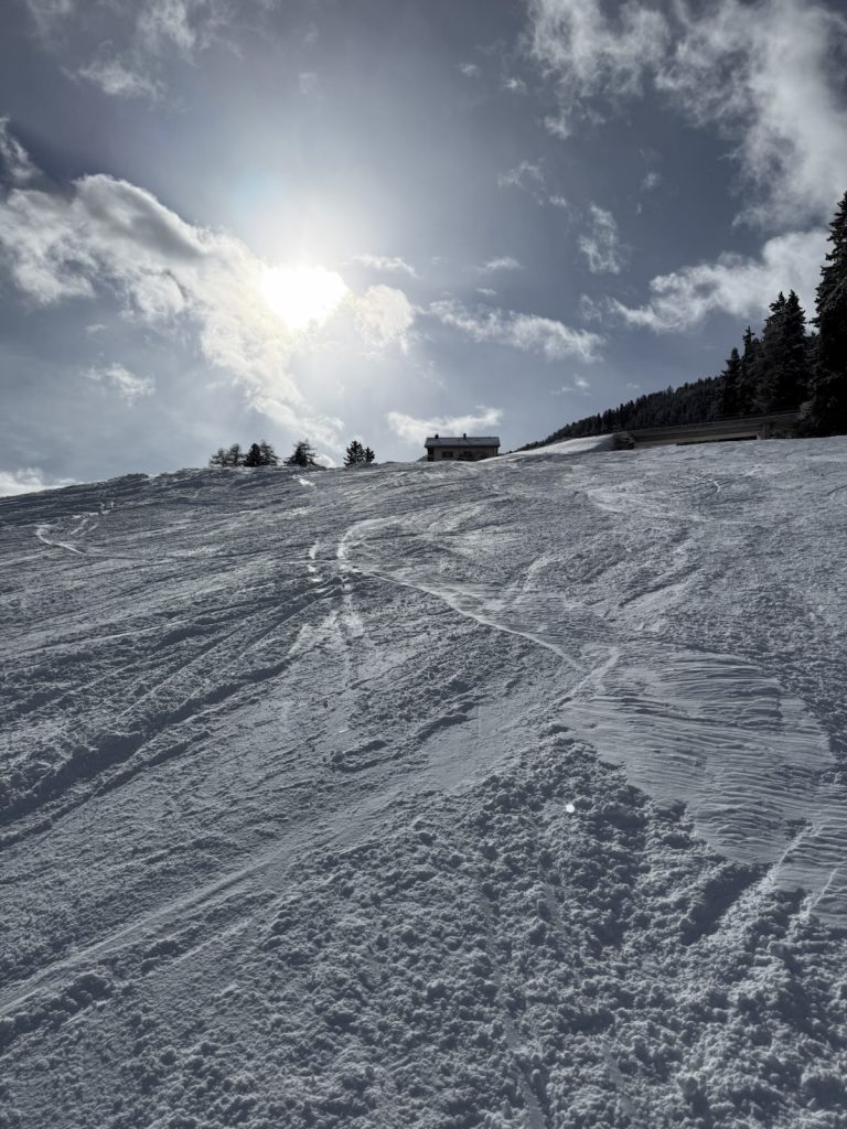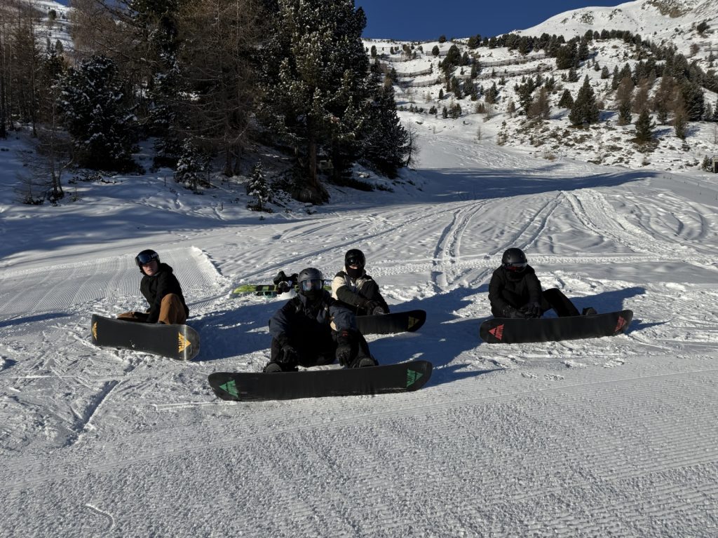 Nach unserer Ankunft begann zunächst der organisatorische Teil der Reise. Zuerst liehen wir unsere Ski- und Snowboardausrüstung aus, anschließend wurden Gepäck und Rucksäcke mit der Gondel hinauf zu unserer Unterkunft transportiert. Nachdem wir in unseren Zimmern angekommen waren und uns kurz eingerichtet sowie umgezogen hatten, standen wir auch schon auf der Piste und starteten die ersten Abfahrten.