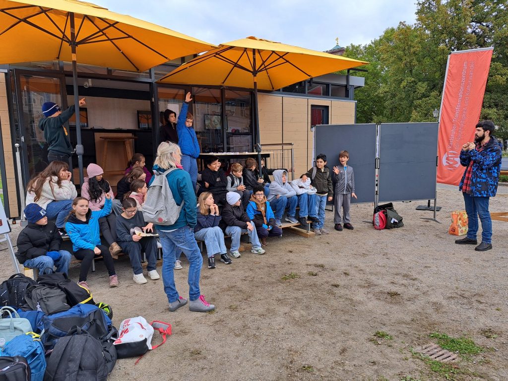 Was ein Baum in der Stadt erlebt, hat er uns gefragt, und erzählt, dass ein Baum viel Sonne und Abgase abbekommt und oft wenig Erde hat. Er fragte, ob ein Baum weglaufen kann. Alle sagten: „Nein!“